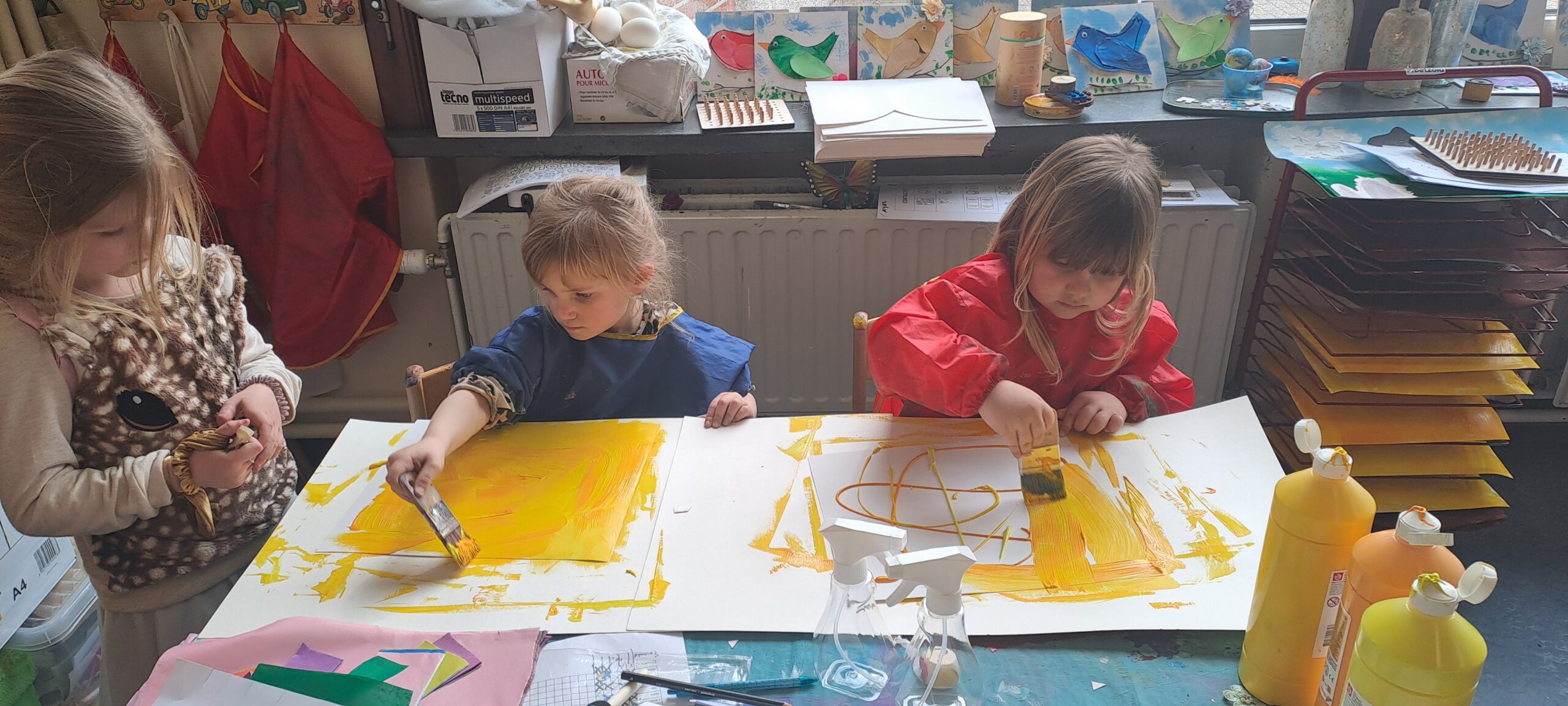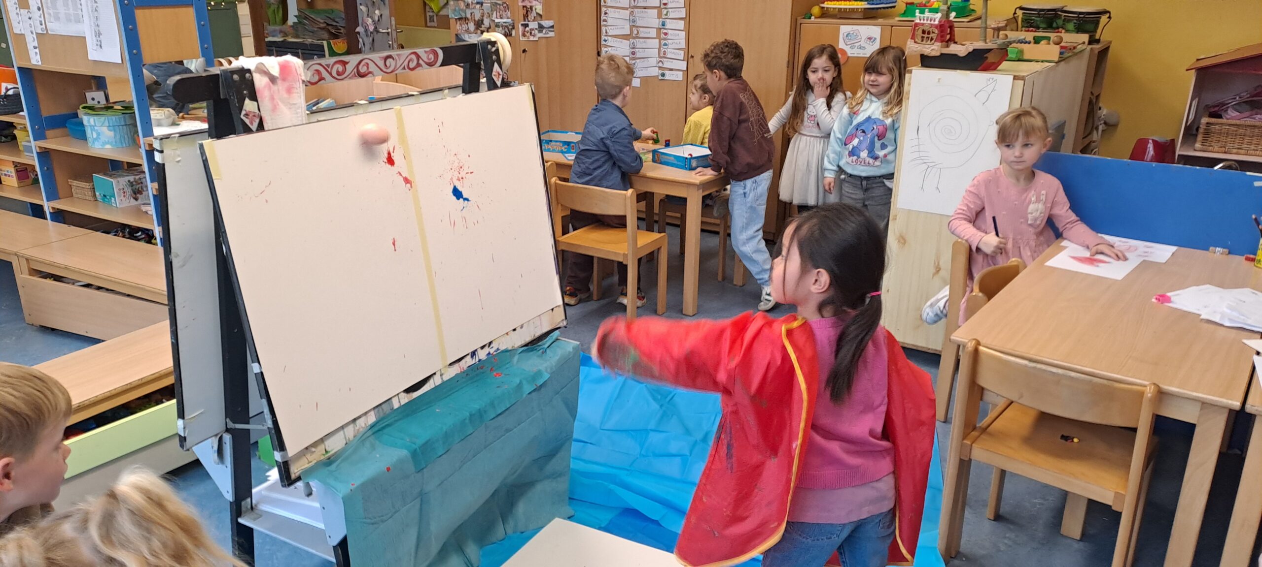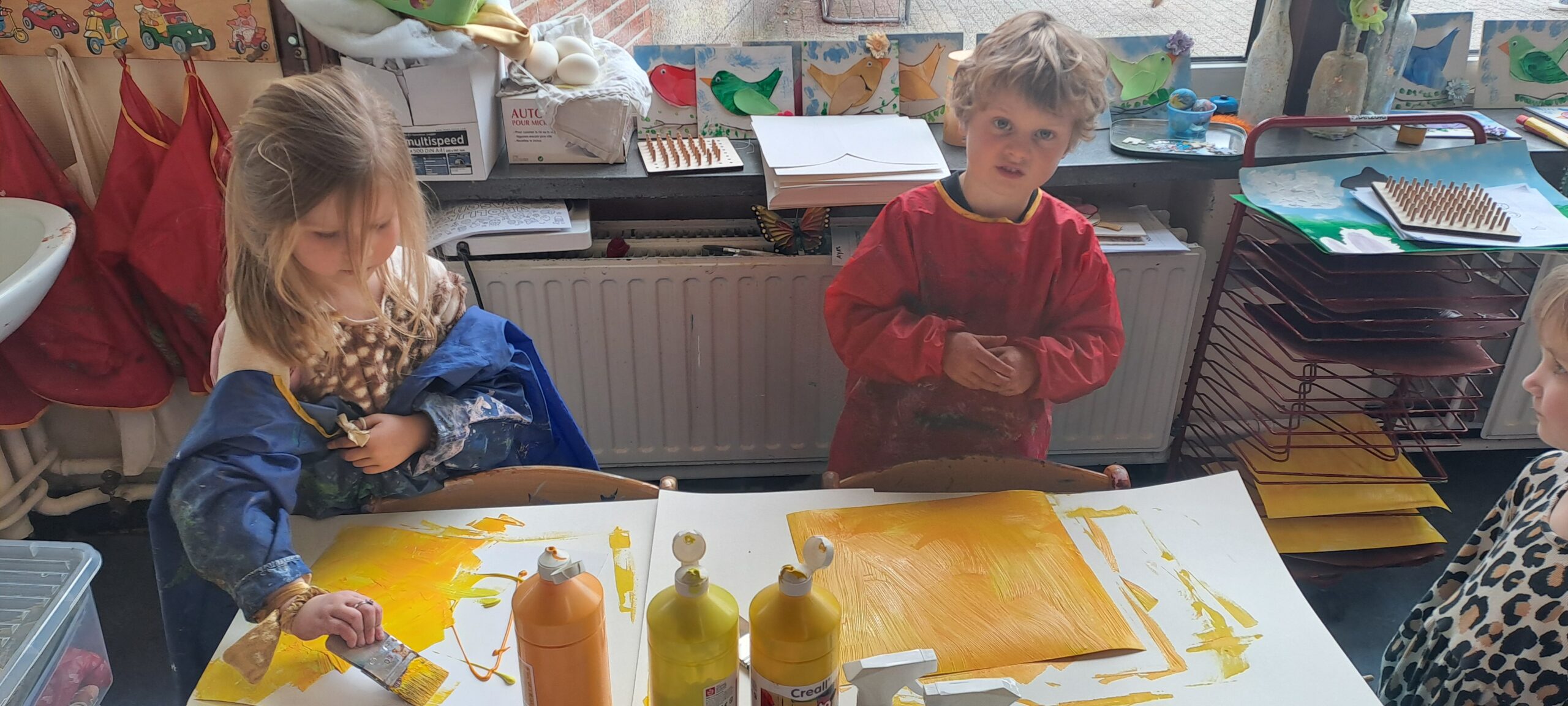 Vlug aan ’t verven met z’n beidjes.