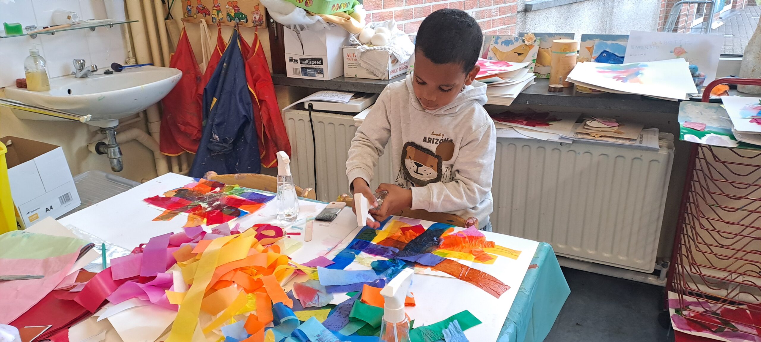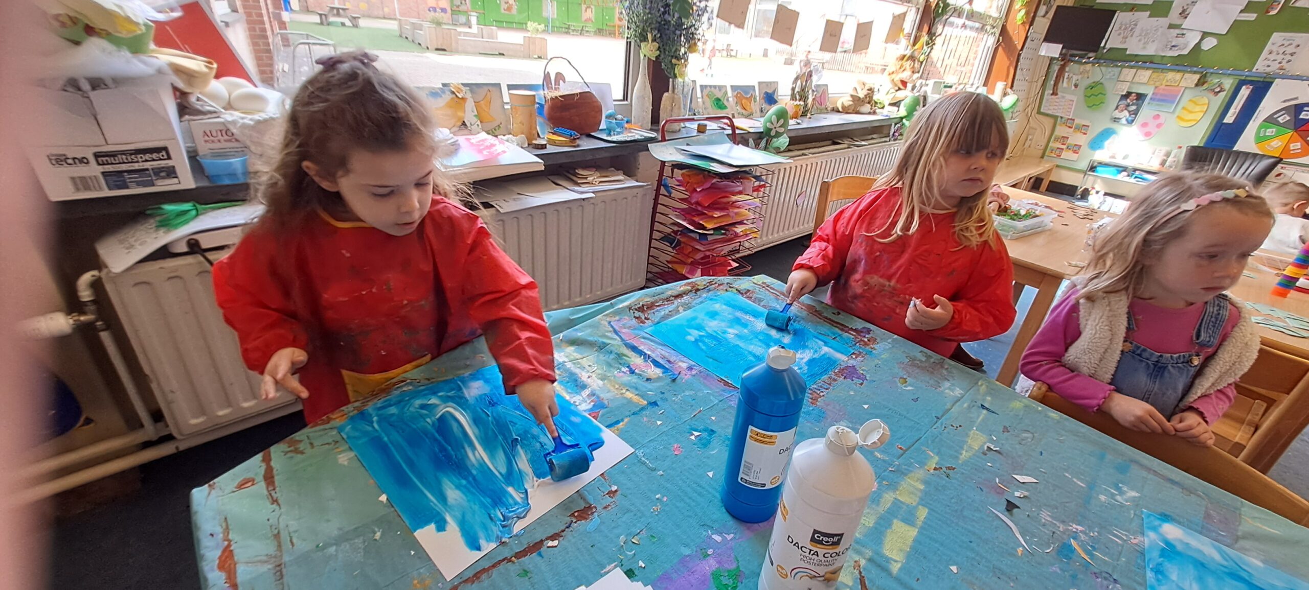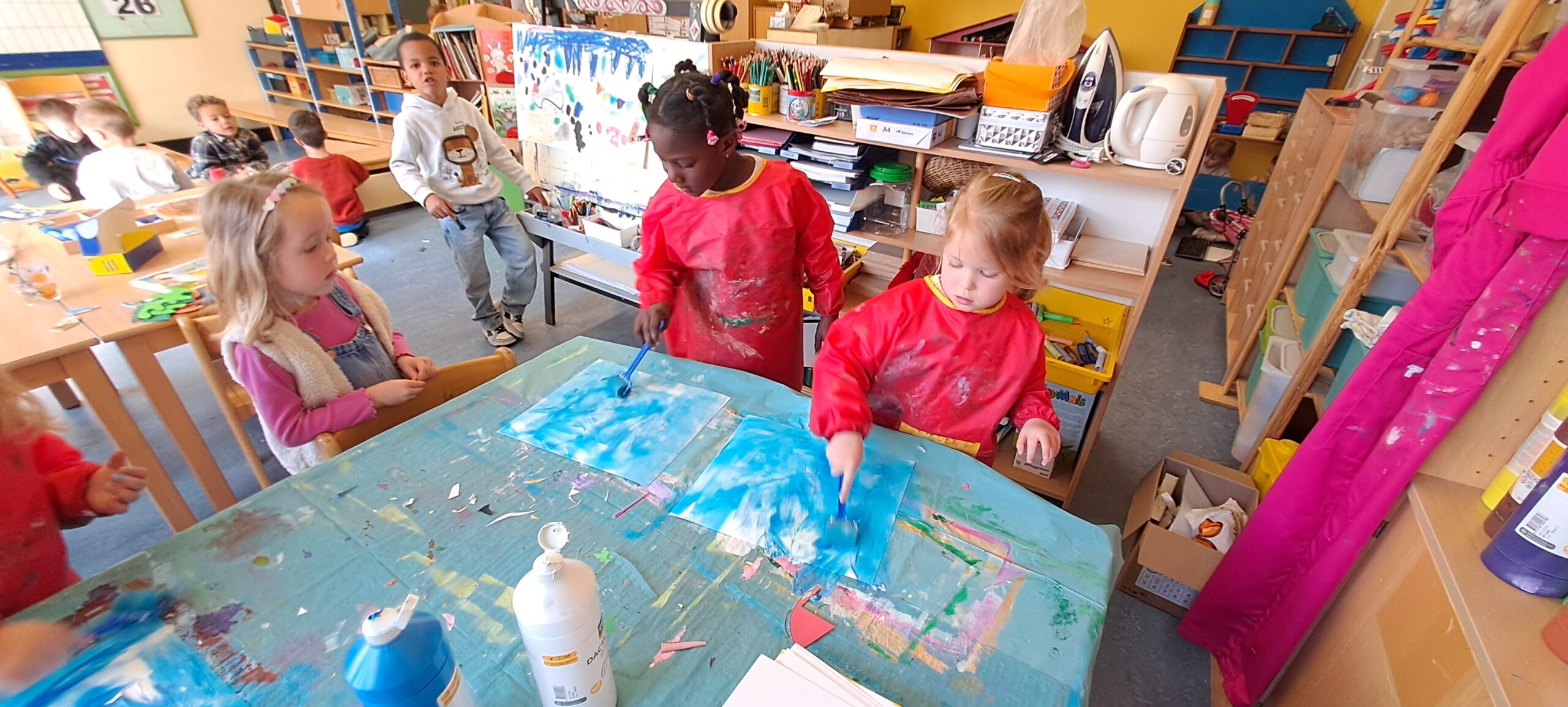 Vlug aan ’t verven met z’n beidjes.