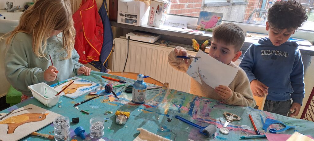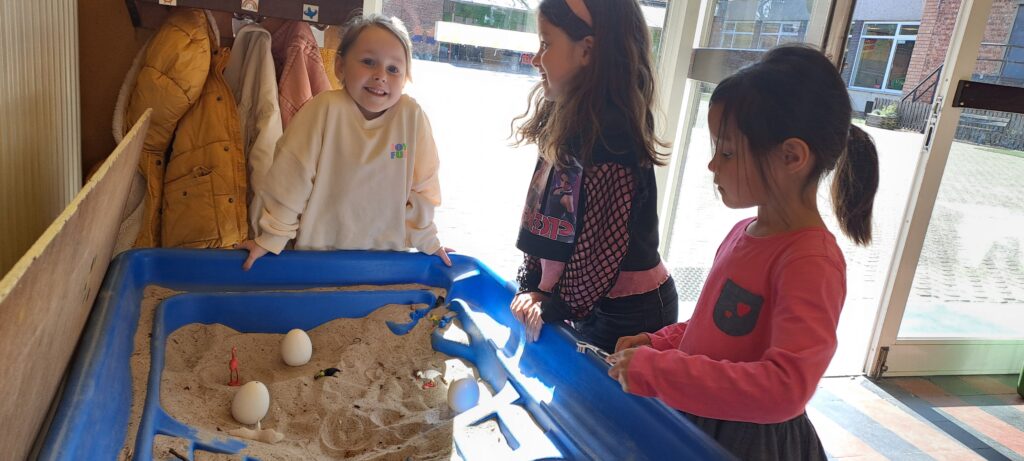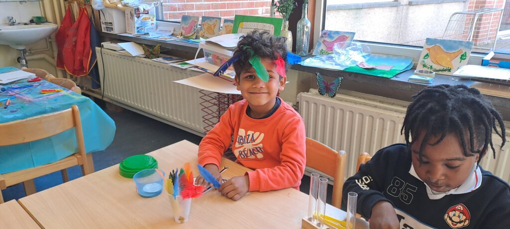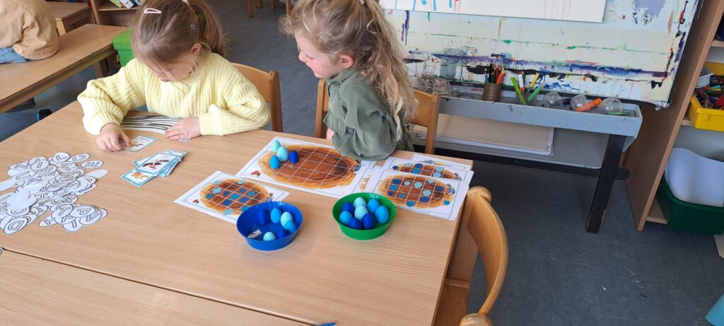 We gingen op onderzoek naar een vreemd ei dat in onze klas terecht gekomen was! We verzamelden takken om een nestje te maken, gingen met de verrekijkers vogels spotten, we vergeleken het met andere eieren, wogen het , gingen verschillende vogel soorten opzoeken, … En we vonden uiteindelijk van welke vogel ons ei was!