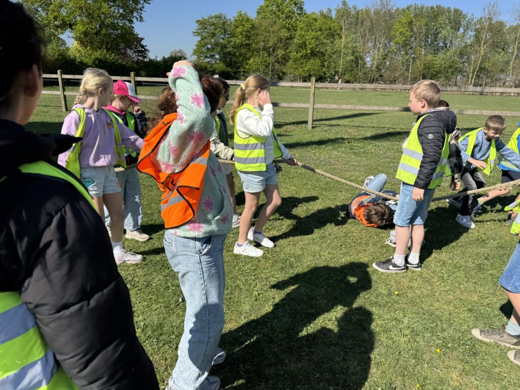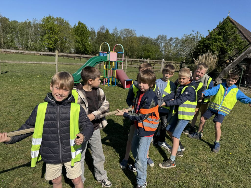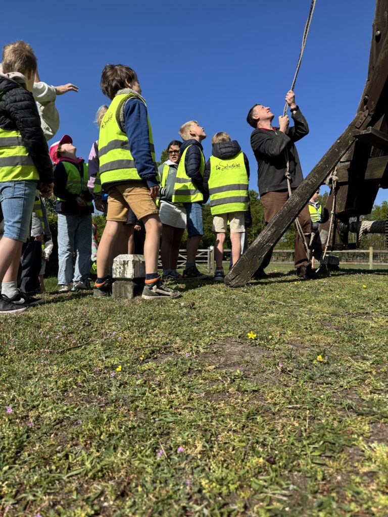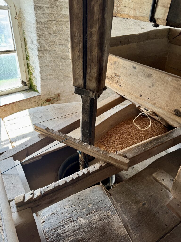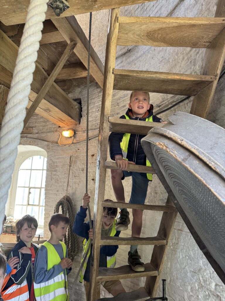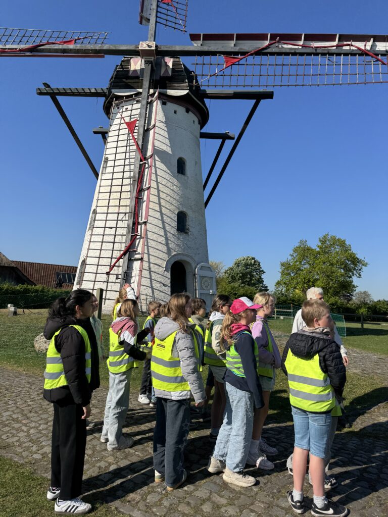 We mochten helemaal tot boven in de windmolen klimmen! We trokken zakken op en zagen heel wat tandwielen draaien.