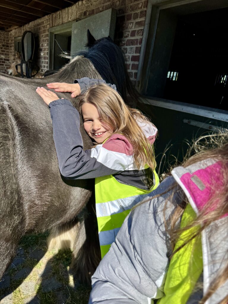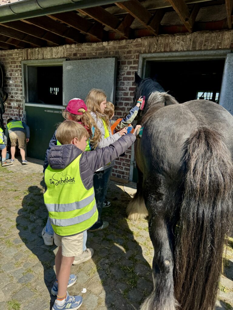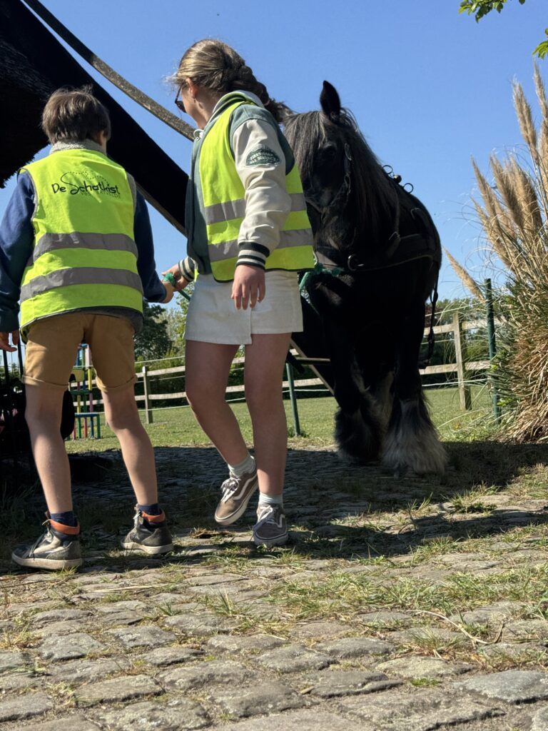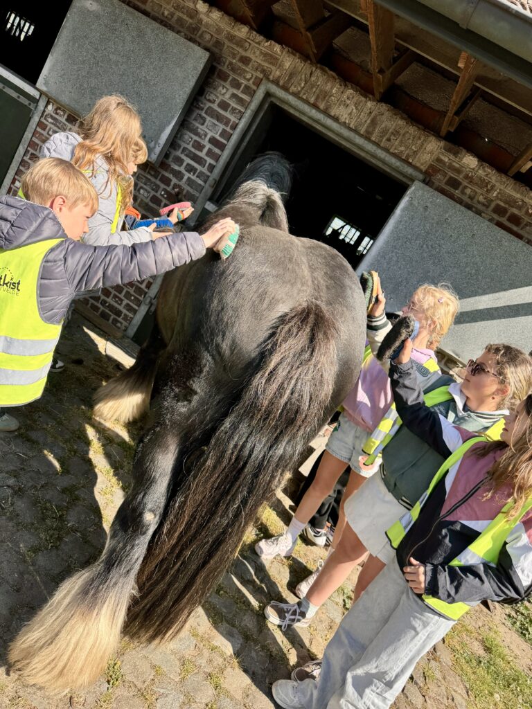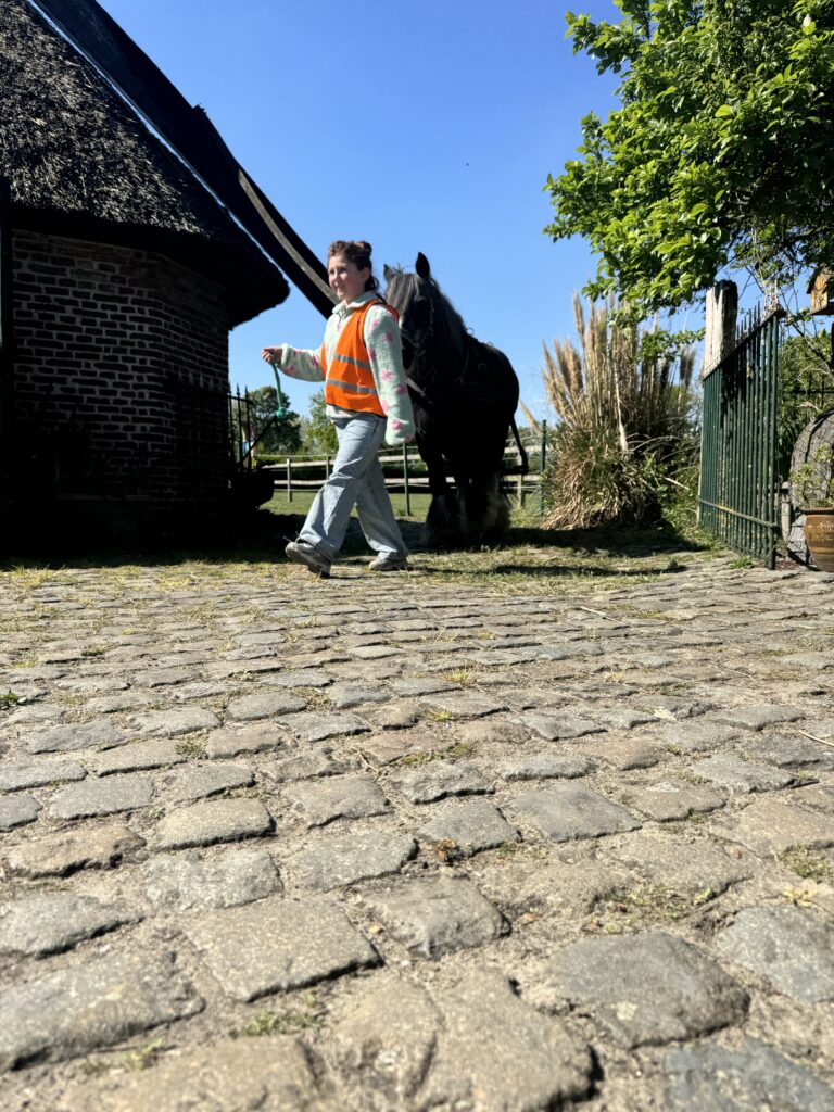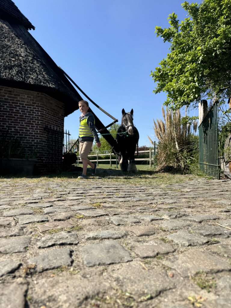 We borstelden het paard en stapten ermee rond de rosmolen.